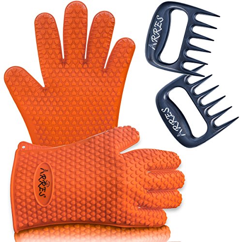 - ◢DYNAMIC DUO -Whether it's inside by the stove, or in the great outdoors with your trusty charcoal grill, Arres has the superior tools for superior grill masters! You'll receive a pair of our durable, heat resistant silicone gloves paired with our easy to handle and easier to clean meat claws!