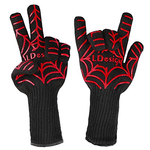 Read main features below to know more about BBQ Grill Cooking Gloves, LDesign Heat Resistant up to 932℉ Extreme oven mitts Glove Sets for Barbecue, Oven, Smoking and Potholder with Silicone Grips - 1 Pair.You can compare with another product for grill gloves