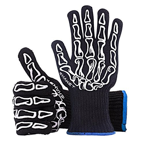 The EXAKET Extreme Heat Resistant Gloves - Protection Up to 932oF(500°C) - Special Designed for Oven Grilling BBQ Cooking Camping Baking - 5'' Forearm Protect Pot Holders Grill Gloves, Oven Mitts it that i recomended for grill gloves.