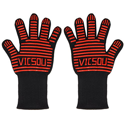 The Vicsou Updated 932°F Heat Resistant Gloves, 3-layer Structure Heatproof Fireproof and Insulating XXL Two-Sided Grill BBQ Gloves Oven Mitts (1 Pair) it that i recomended for grill gloves.