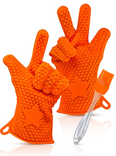 The KITCHENEED Barbecue Grilling Cooking Gloves - Heat Resistant Silicone BBQ Accessories - Waterproof Grill & Kitchen Tools for Men & Women -Double as Pot Holders & Oven Mitts -w/ Bonus Basting Brush it that i recomended for bbq gloves.