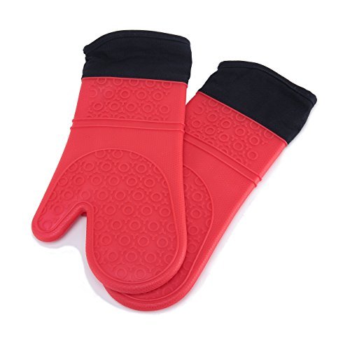The Proteove Pack of 2 Silicone Oven Mitts, Extra Long Heat Resistant Oven Gloves-with Deluxe Padded Cotton Liner for Extra Protection,Best for Grilling Cooking and Baking, Red it that i recomended for silicone oven mitts.
