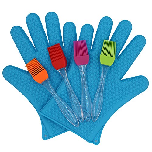 The YOUKOYI Oven BBQ Gloves/Mitts Silicone Heat Resistant for Barbecue Grilling/Cooking/Baking with 4 FREE Basting/Pasty Brushes(Blue) it that i recomended for silicone oven mitts.